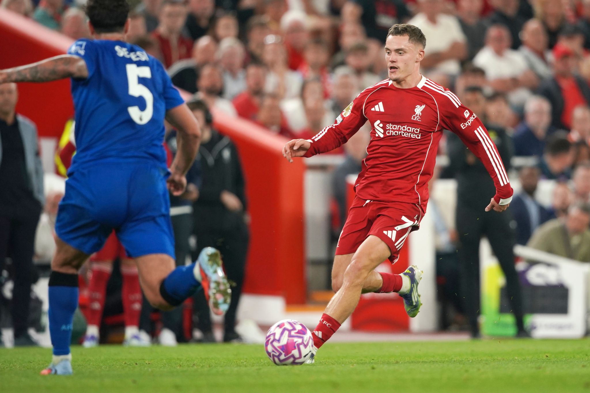 Neben dem Torschützen Ekitiké und dem früheren Leverkusener Wirtz, der weitgehend unauffällig blieb, stand ein dritter Neuzugang aus der Bundesliga in der Startelf. Jeremie Frimpong war in diesem Sommer ebenfalls von Bayer zu den Reds gewechselt.